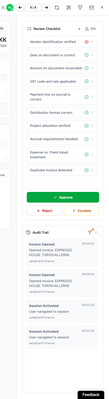 Verifi maintains a comprehensive audit trail that logs all user actions, AI suggestions, and corrections.